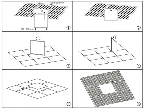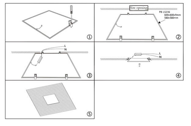 - Dùng tay bật 2 pad của 1 bên đèn cài vào laphong sau đó đến đầu còn lại.Chỉnh đèn ôm sát vào trần và mở điện kiểm tra. Hoàn thành lắp đặt.