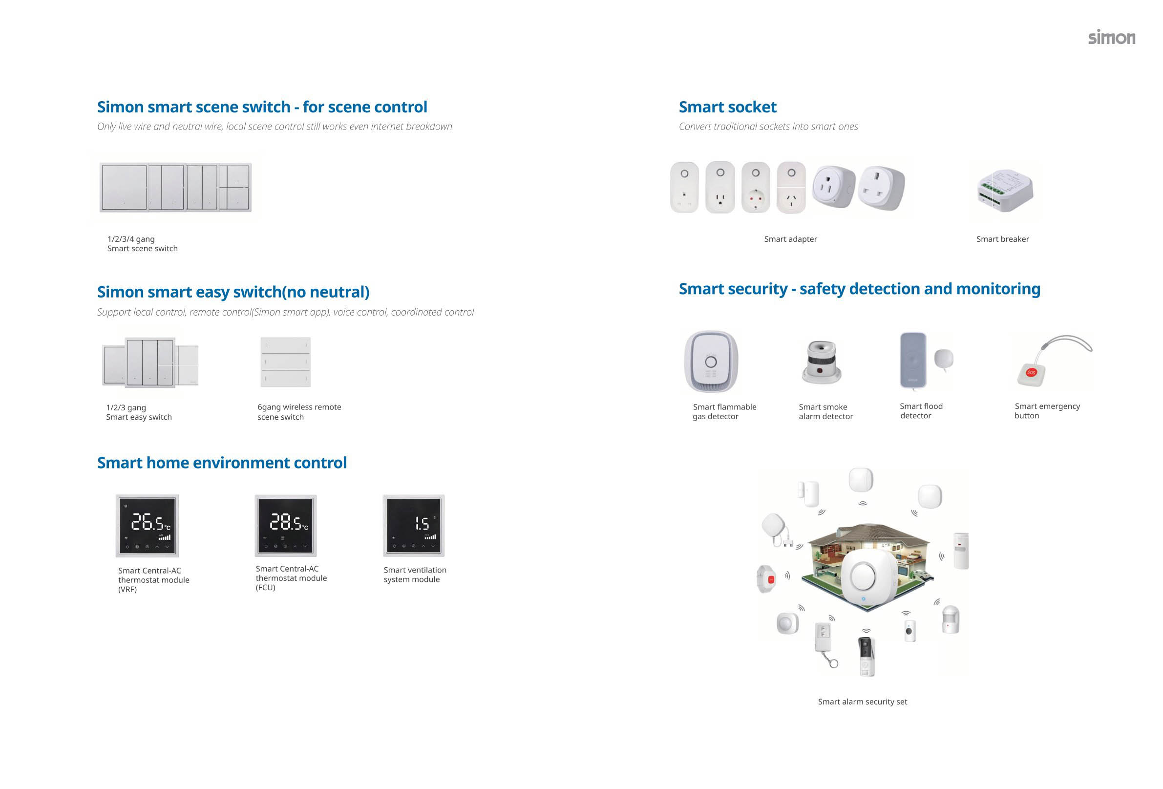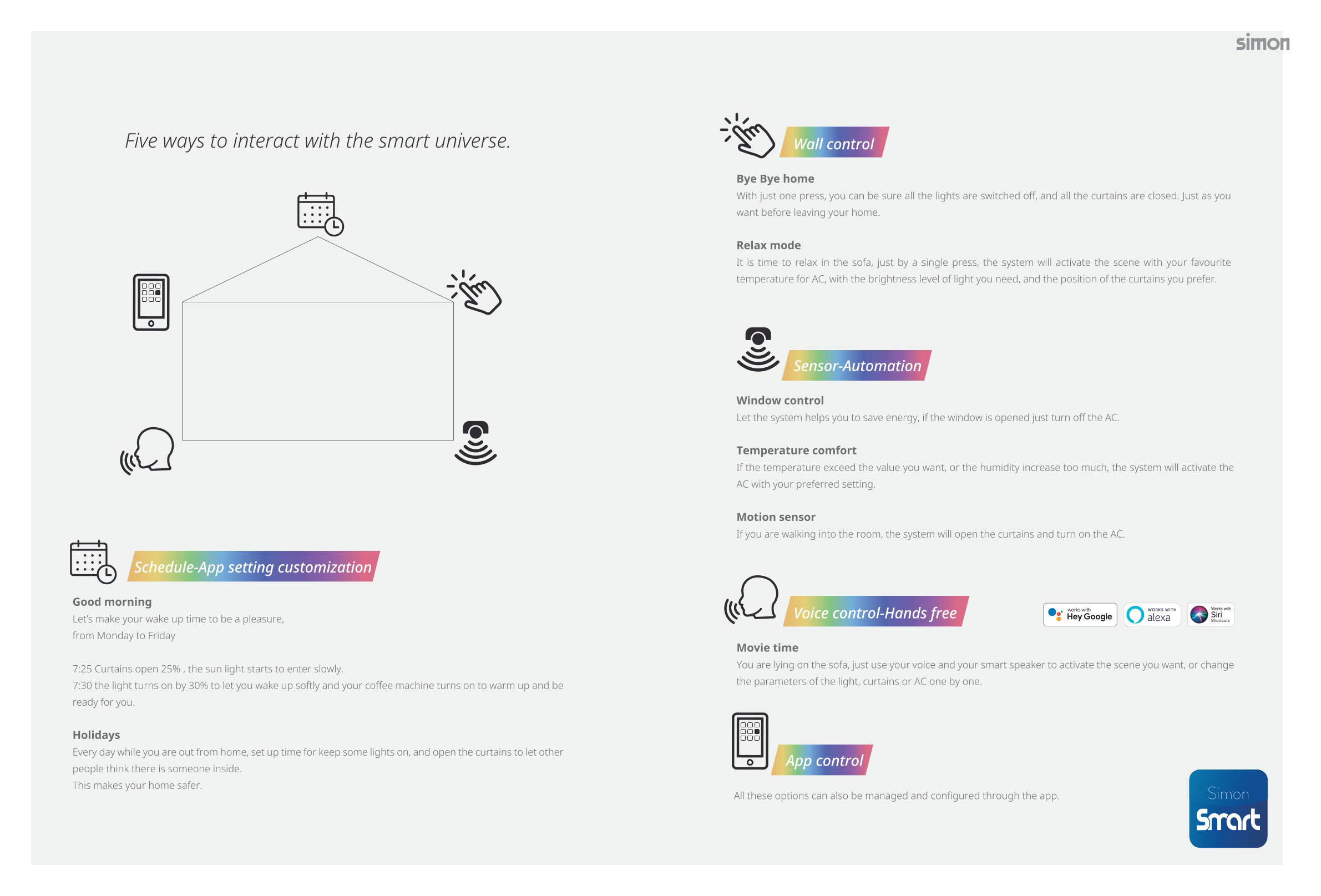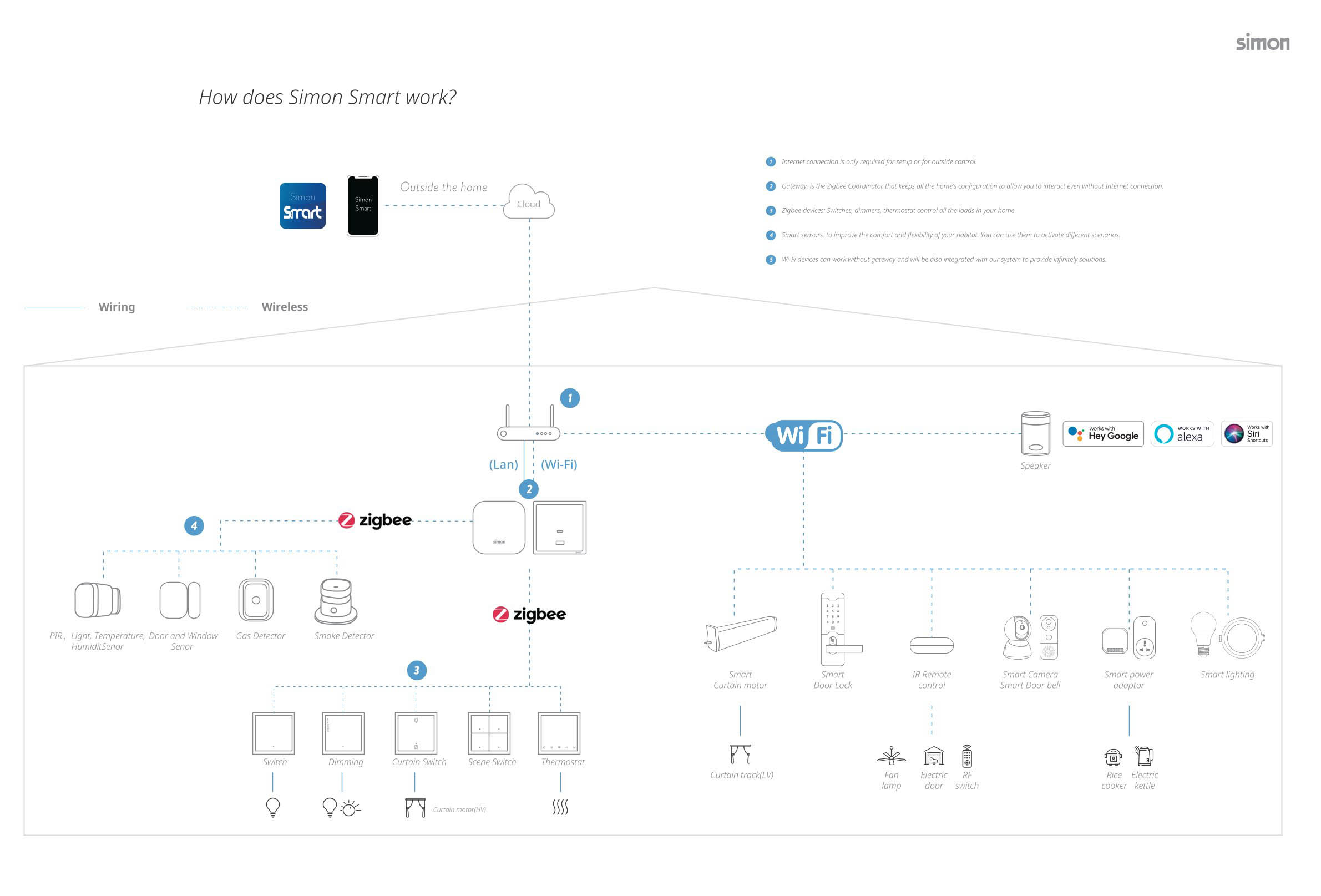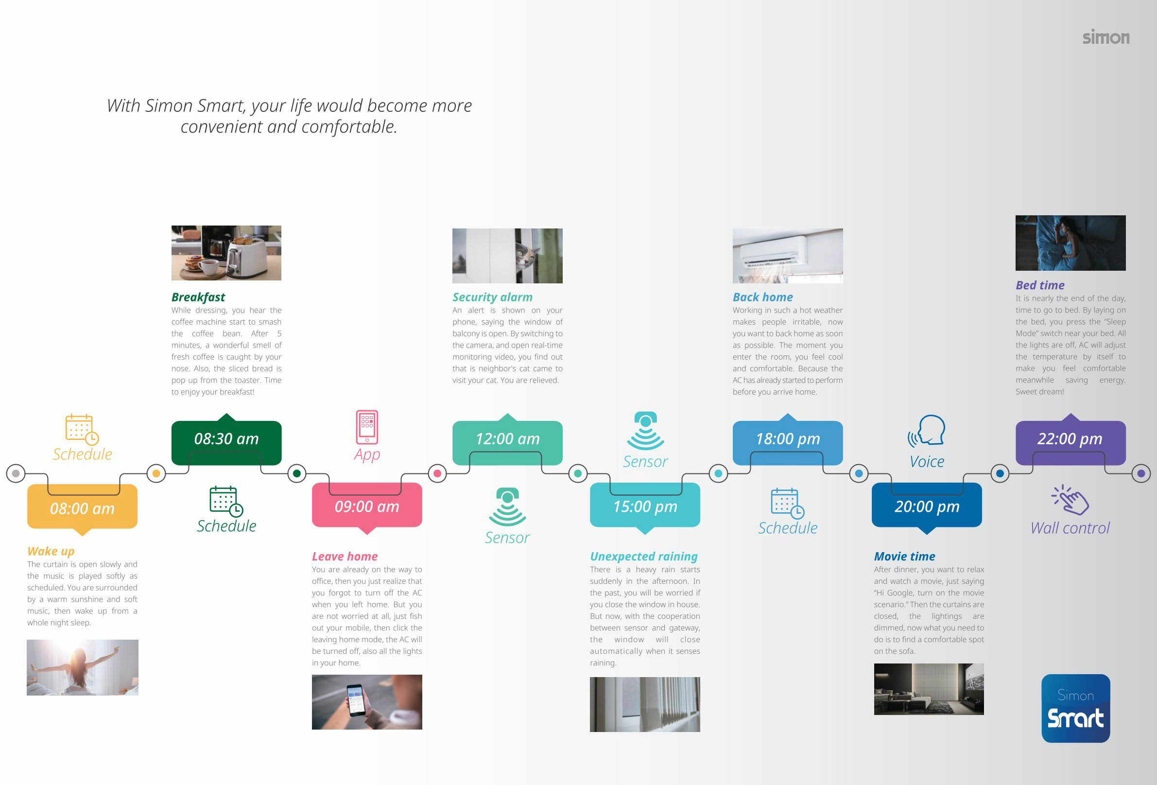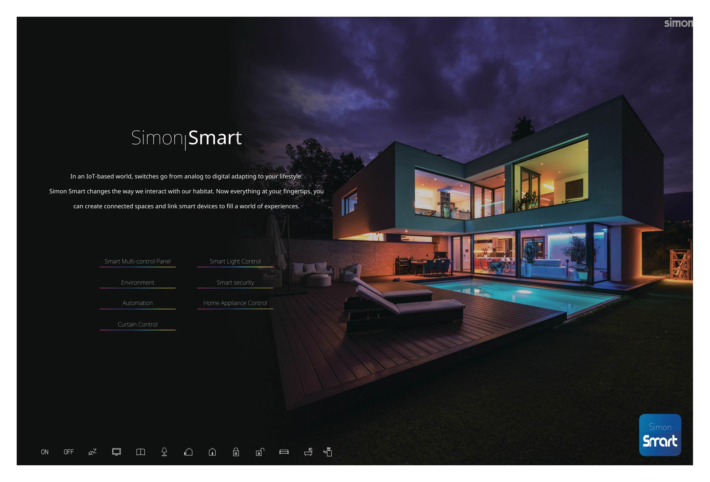 Hệ thống nhà thông minh Simon Smart mang đến một cuộc sống thông minh “bạn có thể có được những gì bạn muốn, chỉ cần chạm vào nó” cho hàng nghìn hộ gia đình. Phá bỏ cách truyền thống sử dụng ổ cắm công tắc, sử dụng điện thoại di động, tự động hóa bằng giọng nói, hướng cảnh…